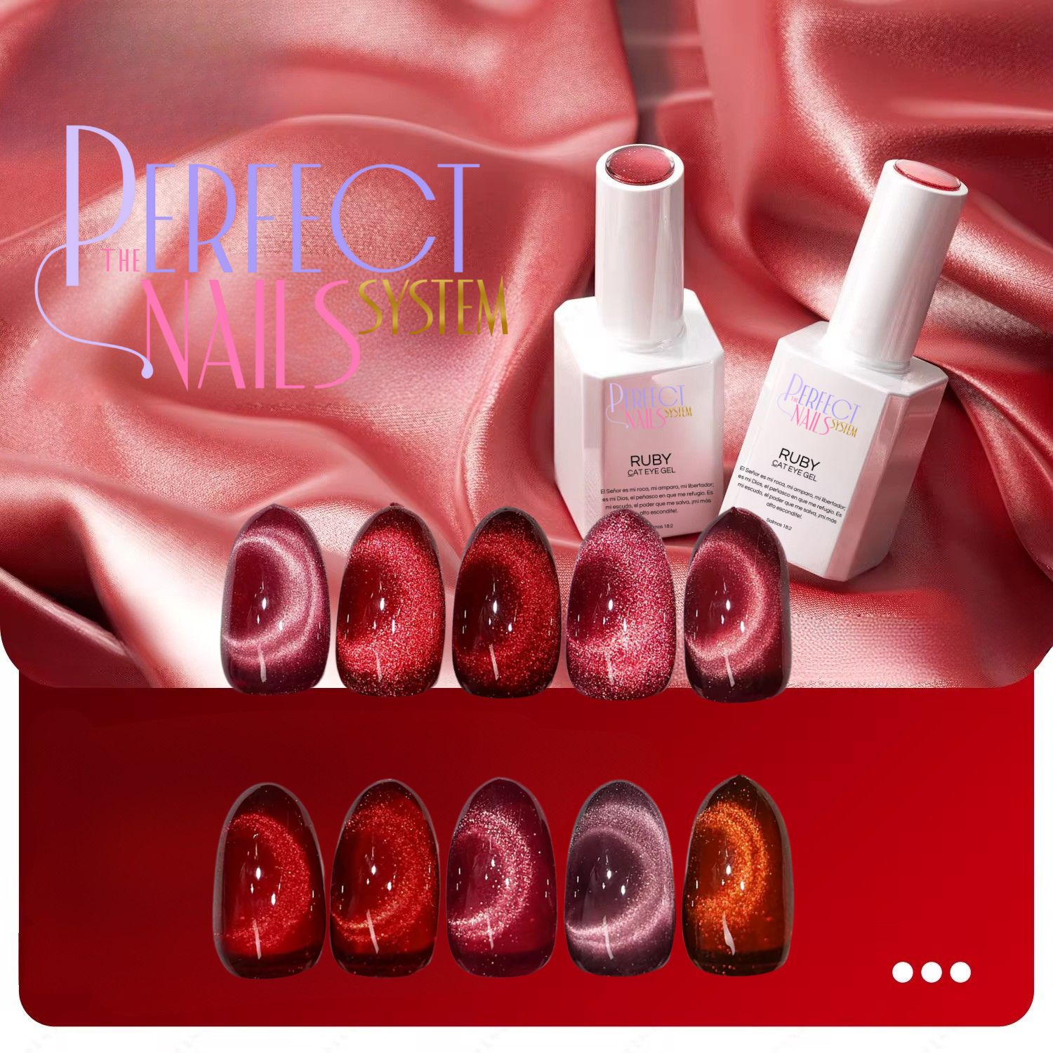 Transforma tu manicura en una obra de arte con Ruby Cat Eye, el gel semipermanente que combina color rojo rubí intenso con un efecto óptico tridimensional espectacular. Gracias a su fórmula magnética, podrás crear líneas y reflejos que cambian según el ángulo de la luz, imitando el icónico “ojo de gato”.